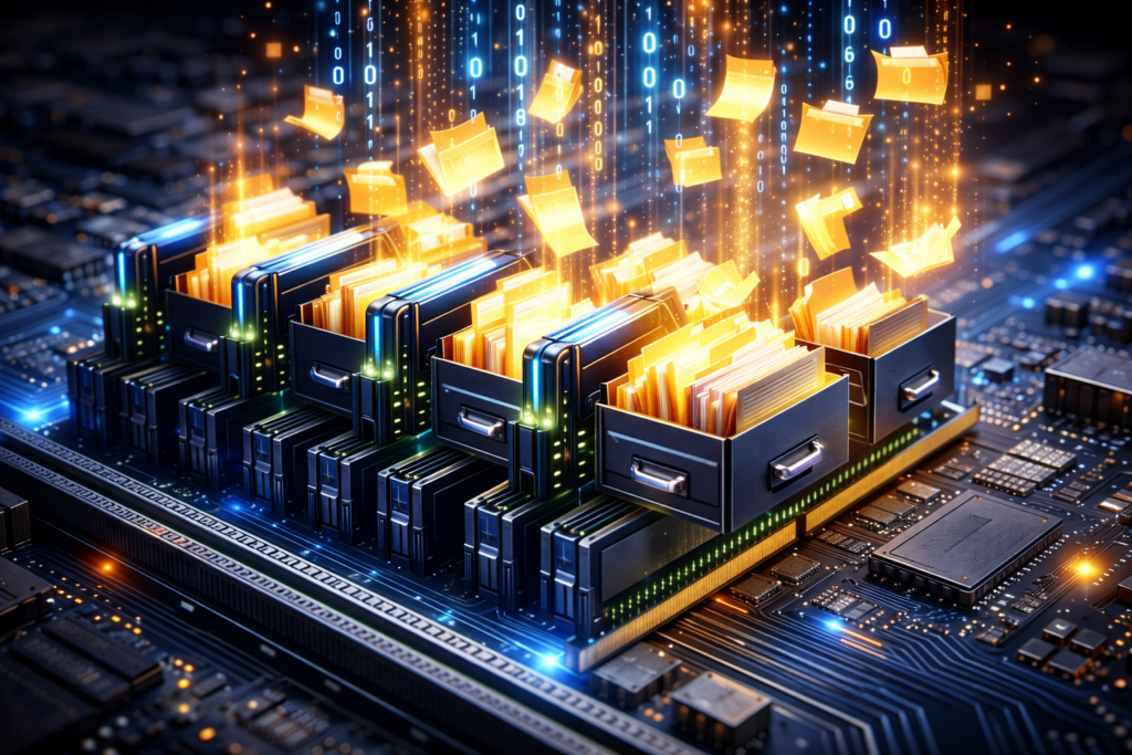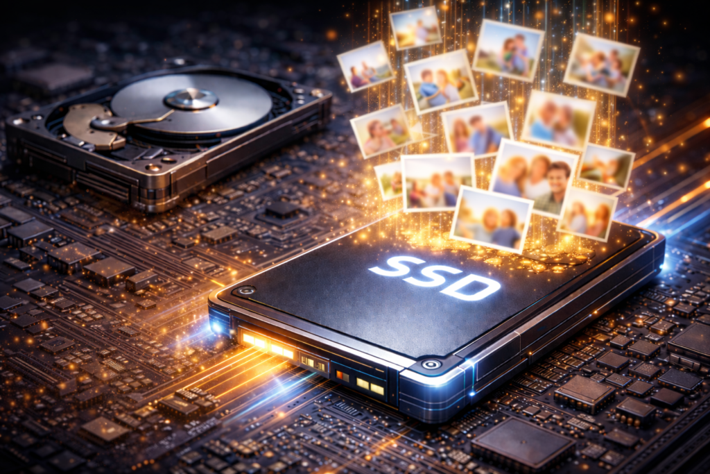 SSDとは、情報を長期記憶する部品です。昔はHDDという部品もありましたが、最近は情報の読み取りが早いSSDが主流です。